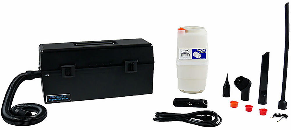 Atrix’s VACOSE110 Omega Supreme Plus electronic vacuum is an excellent H12 Ultrafine immediate containment option for cleaning static-sensitive equipment such as computers, copiers, printers, data centers, ATMs, gaming, banking, robotics, and telecom applications. This vacuum features Atrix’s very comprehensive ESD-safe accessory options. The vacuum has has ultrafine filtration, self-storage and contained accessories, a 1,000-hour-rated Ametek® Advantek II motor, 10-foot detachable power cord, and 10-foot ESD-safe stretch hose.
