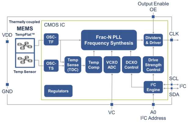 By leveraging SiTime's unique DualMEMS temperature sensing and TurboCompensation technology, the SiT5155 delivers the most stable timing in the presence of environmental stressors – air flow, temperature perturbation, vibration, shock, and electromagnetic interference (EMI). This device also integrates multiple on-chip regulators, providing power supply noise filtering and eliminating the need for a dedicated external LDO. SiT5155 can be factory-programmed to any combination of frequency, stability, voltage, and pull range. This programmability enables designers to optimize the clock configuration while eliminating the long lead time and customization cost associated with quartz TCXOs where each frequency is custom built.