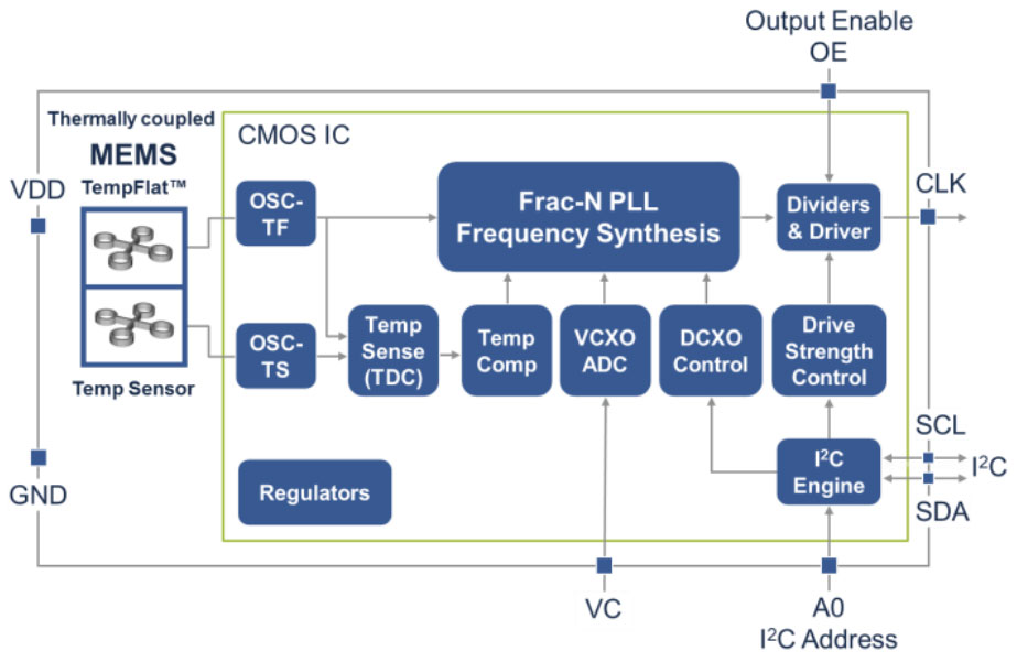 The SiT5356 from SiTime Corporation is a ±100 ppb to ±250 ppb precision MEMS Super-TCXO, temperature-controlled oscillator. This device is engineered for the best dynamic performance. It is fully compliant to the GR-1244 Stratum 3 oscillator specifications. By leveraging SiTime's unique DualMEMS™ temperature sensing and TurboCompensation™ technology, the SiT5356 delivers the most stable timing in the presence of environmental stressors: airflow, temperature perturbation, vibration, shock, and electromagnetic interference (EMI). SiT5356 can be factory-programmed to any combination of frequency, stability, voltage, and pull range. This programmability enables designers to optimize the clock configuration while eliminating the long lead time and customization costs associated with quartz TCXOs where each frequency is custom built. These devices also integrate multiple on-chip regulators, providing power supply noise filtering and eliminating the need for a dedicated external LDO.